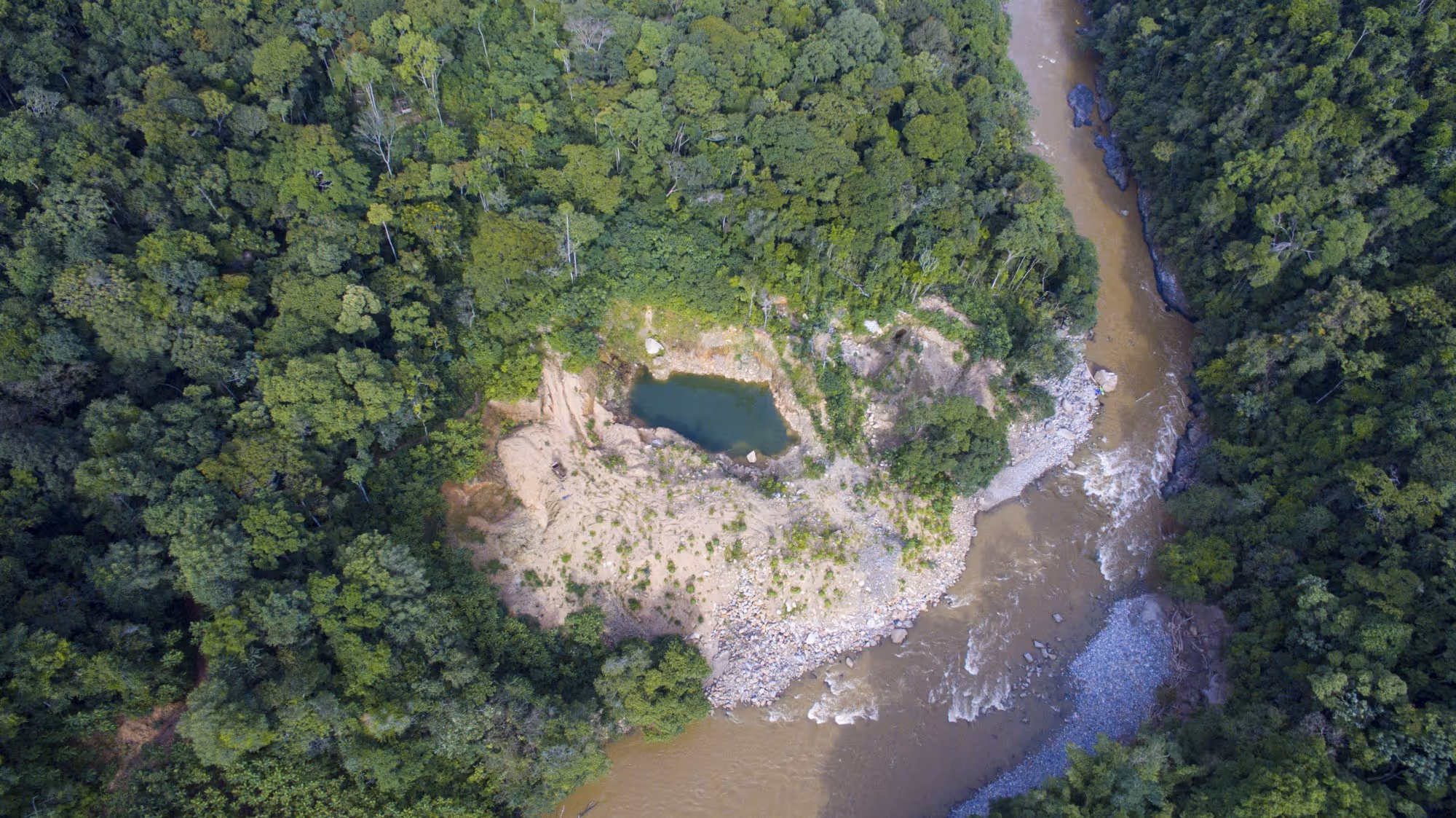 Traveling further down the river, we encountered illegal gold mines. Often connected to paramilitary groups, these operations use a different technique which involves scraping entire shorelines with heavy machinery. In search of greater return, they move hundreds of tons of material and destroy the first 10–20 feet of extremely biodiverse shoreline.