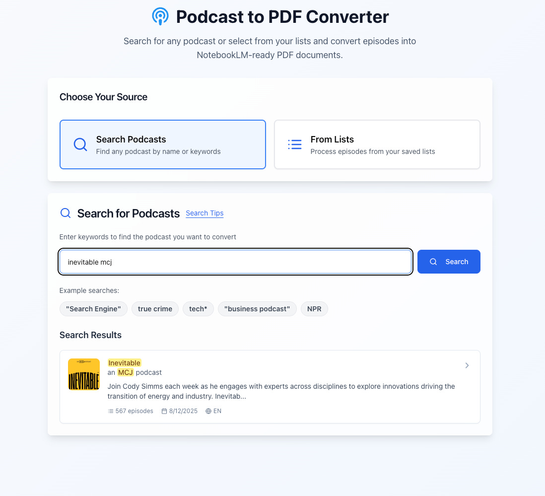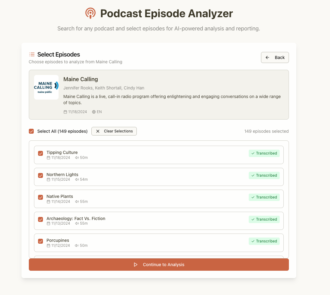 - Deep Research: Bulk downloading episodes and their transcripts so you can query and analyze with AI